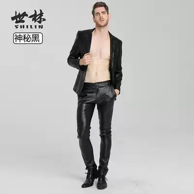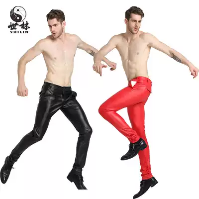 Spring and summer new youth men's leather pants men's slim feet Korean trend nightclub tight locomotive puleather pants