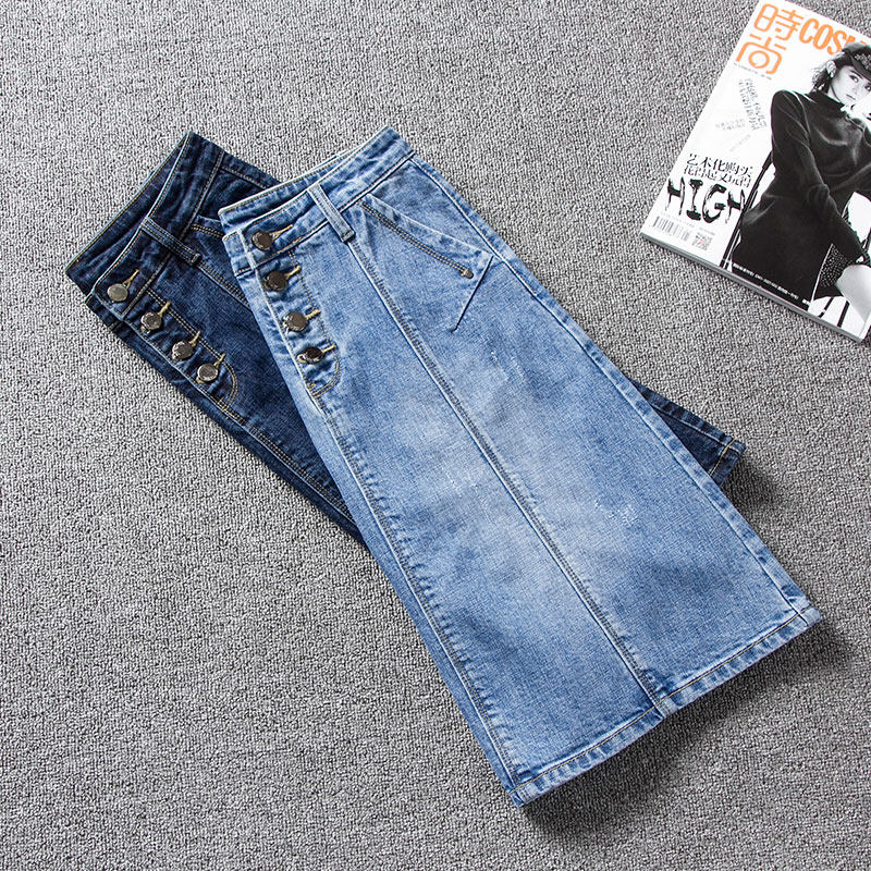 Light Coloured Denim Half Body Skirt Woman 2022 Summer new high waist Long version umbrella skirt Slim Loose A Character Short Skirt