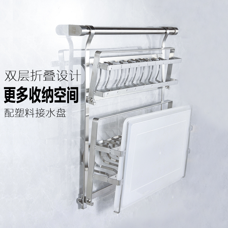 Kitchen dish rack drain rack 304 stainless steel folding plate drain rack kitchen hanger