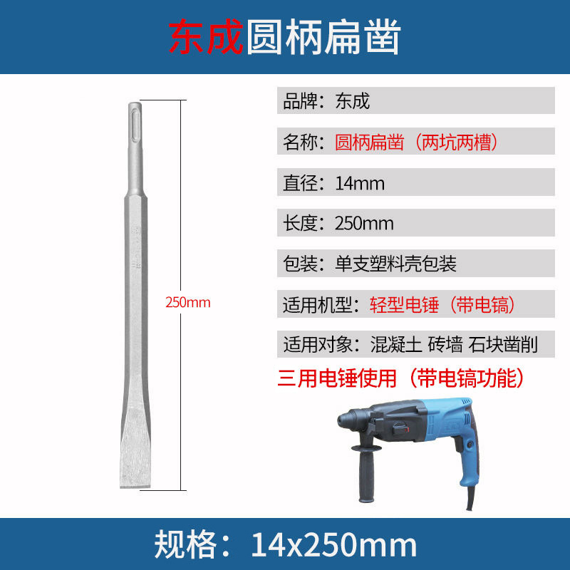 Dongcheng Electric Hammer Drill Impact Drill Square Handle Round Handle Pointed Flat Chisel Pickaxe Brazing Electric Pickaxe U-shaped Chisel Slot Through Wall Drill Bit Accessories - Taobao
