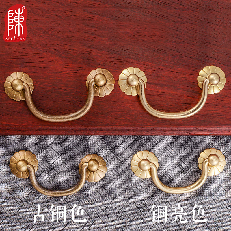 Chinese style handle old vintage pure bronze imitation ancient furniture cabinet door drawer handle box handle traditional Chinese medicine cabinet copper handle