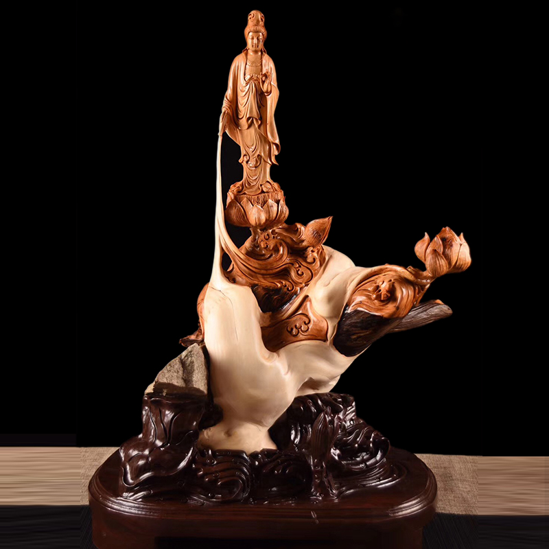 Taihang Cliff Cypress Ornament Maitreya Guanyin Landscape Natural Living Room Root Carving Solid Wood Guan Gong Aging With Type Carving