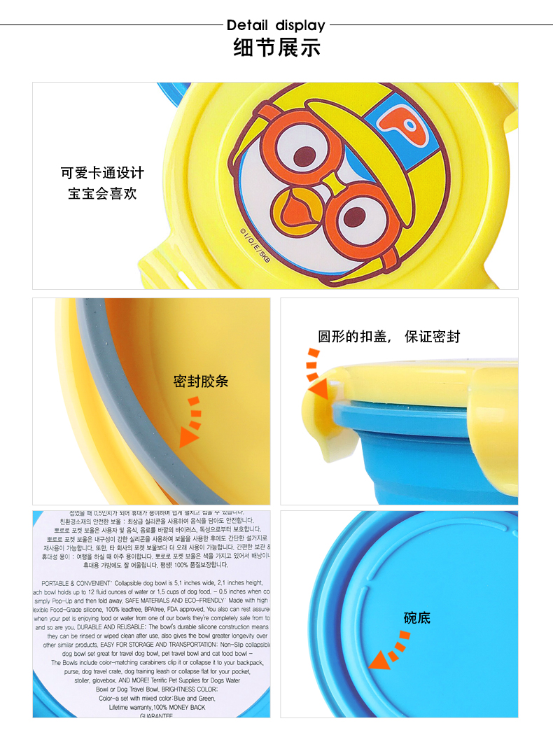 South Korea imports poro Baolulu outdoor baby children's tableware baby portable anti-drop sealed folding food supplement bowl