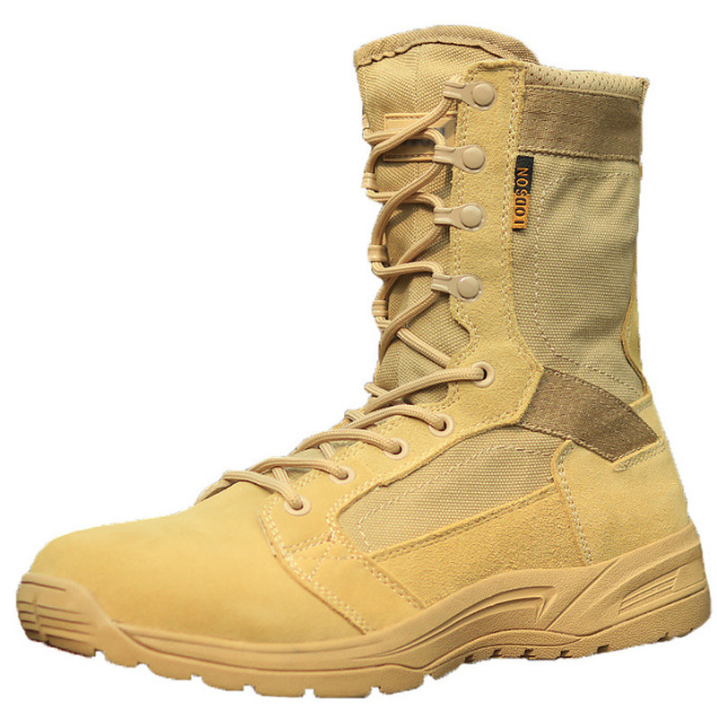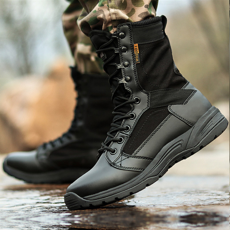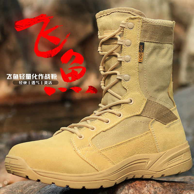 Combat Boots Man Super Light Non-slip Shock Absorbing Summer Breathable Flying Fish Genuine Leather Tactical Shoes High Cylinder Tactical Boots For Training Boots