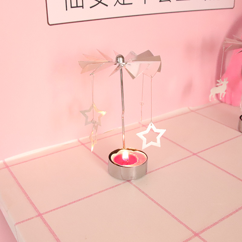 Cute dreamy rotating candle small aromatherapy candlestick girl heart iron romantic retro decoration revolving lantern room decoration