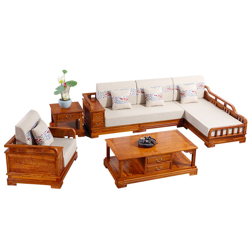 Mahogany rosewood solid wood art hedgehog rosewood log new Chinese style living room design multi-person corner chaise longue sofa