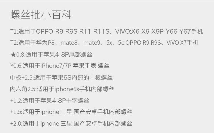 Cross (unpack Apple Android internal motherboard) triangular Y type 0 7 (detached apple 7 8 X 11 median plate 5 stars 0 8 detached apple 4-8 X 11 tail screw T2 hex (