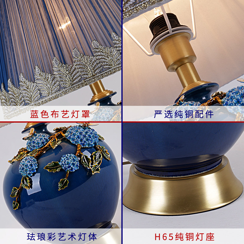 American minimalist ceramic table lamp all copper living room study European bedroom bedside warm table lamp remote control decoration dimming
