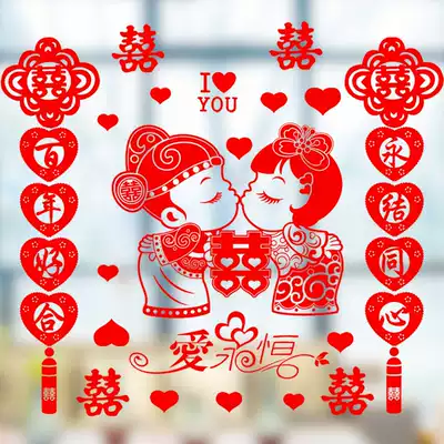 A world marriage room decoration supplies DIY happy words static electricity happy words stickers set wall stickers window grilles paper cutting set