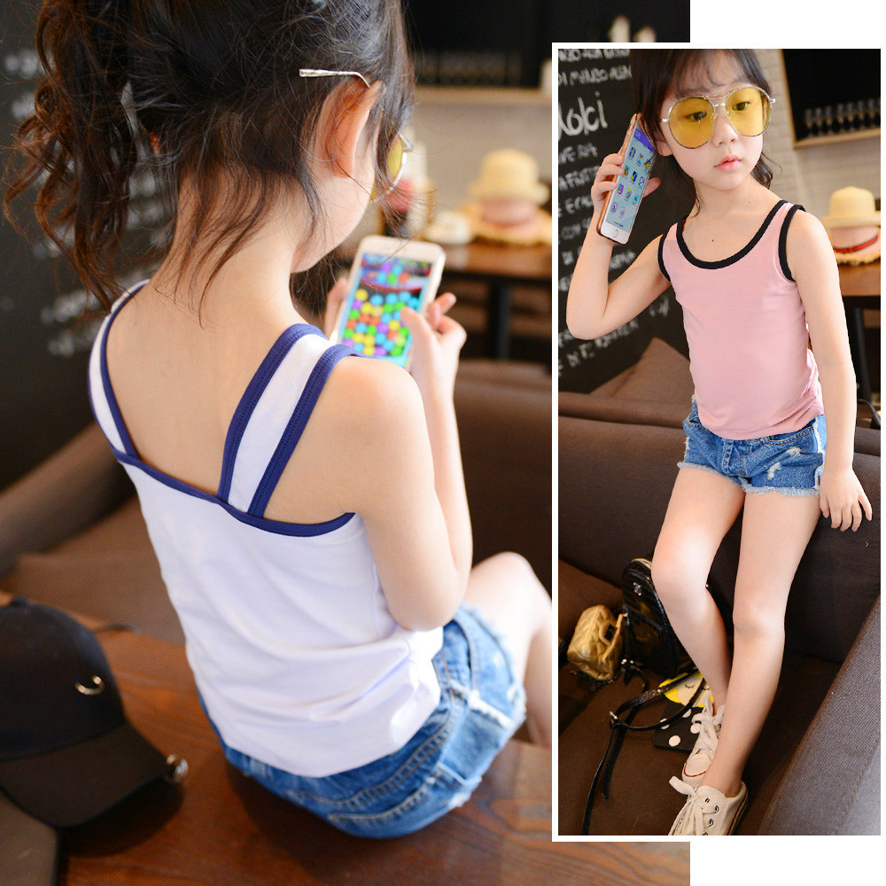 Children's clothes girl hanging from vest of large child Han edition of pure cotton underwear sleeveless pure colored topper children's thin shirt