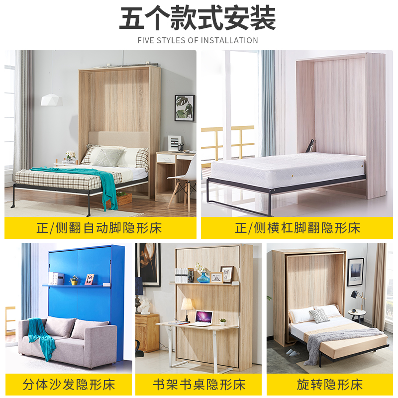 Folding containing bed Multifunction Rotary Bed Positive Side Flap Invisible Bed Five Gold Accessories Murphy Hide Wall Bed