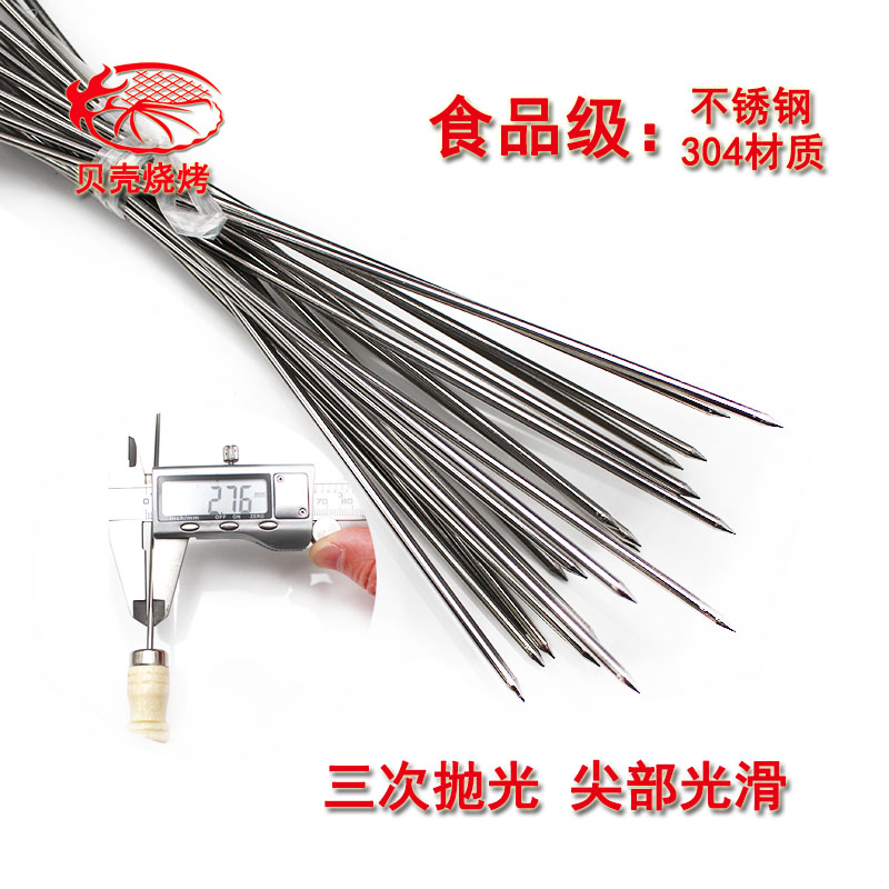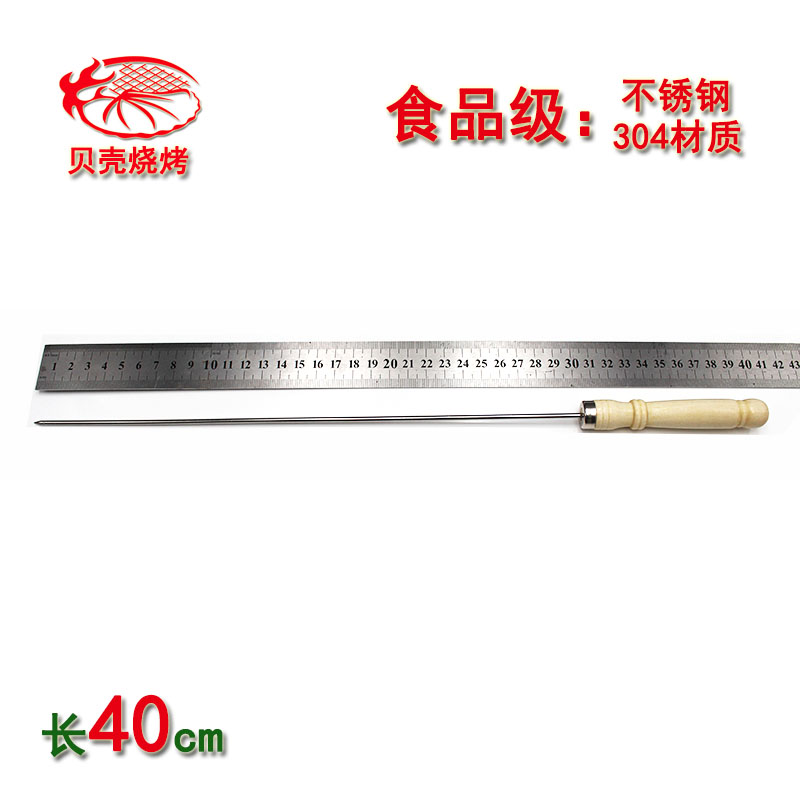 304 stainless steel barbecue sign food grade with wood handle round sign length 40cm plus coarse lengthened grilled chicken wings bulk meat