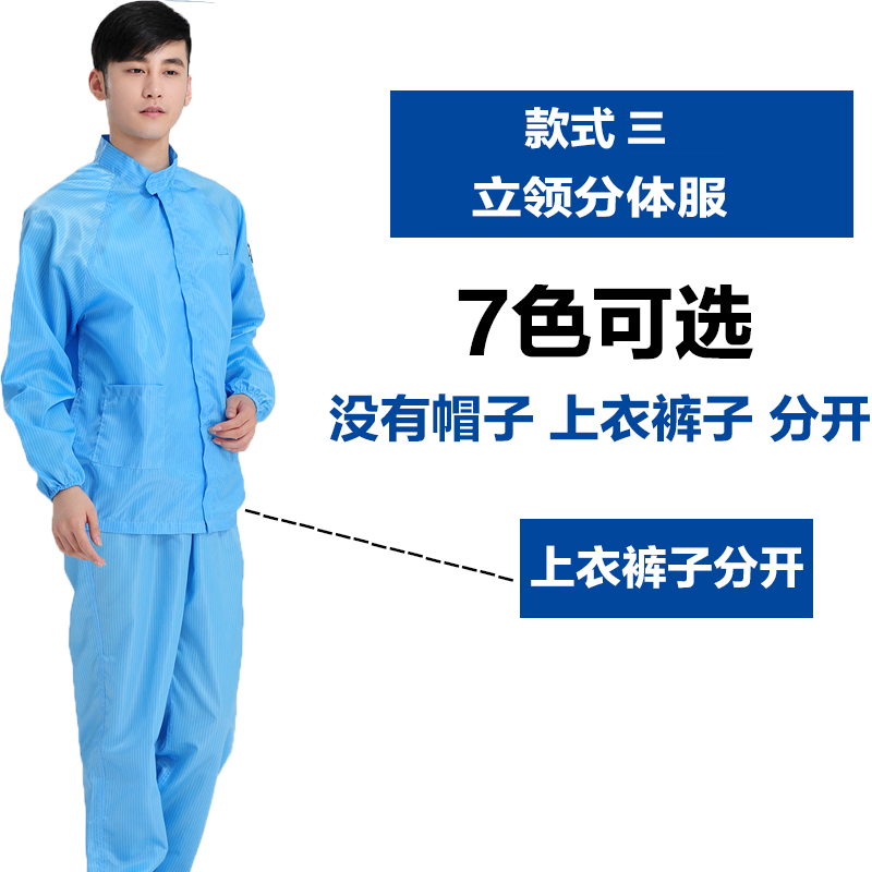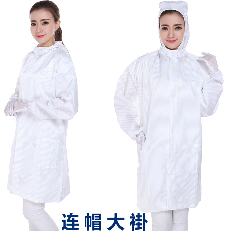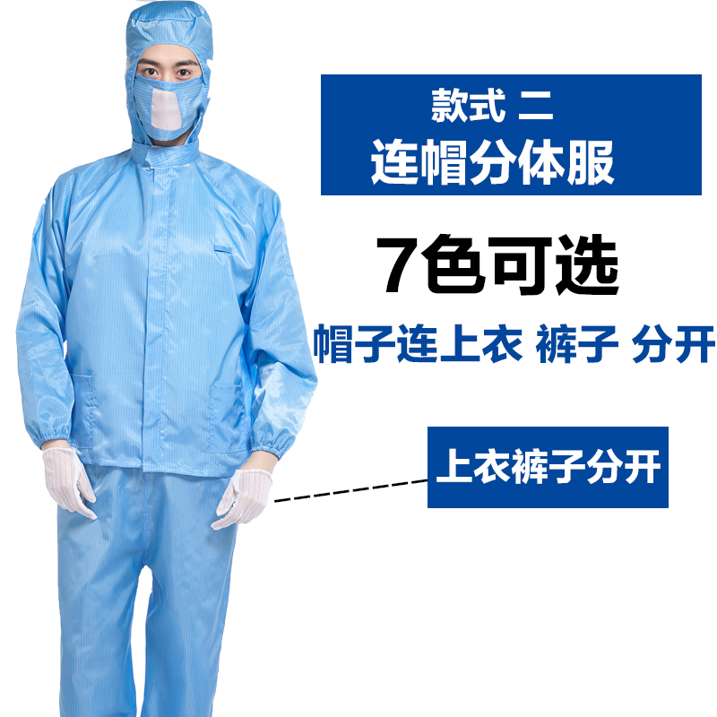 QCFH dust-free anti-static clothes with hood one-piece full body split protective overalls female blue men's clothing repeated use