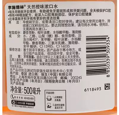 Li Shi Delin mouthwash natural orange flavor 500ml * 3 bottles = 1500ml fresh breath to remove plaque