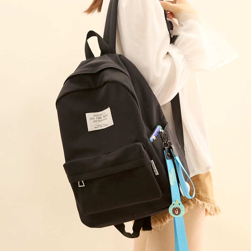 NR Noran Solid Color Small Fresh Backpack Female Korean Simple High School Schoolbag Male Waterproof Backpack