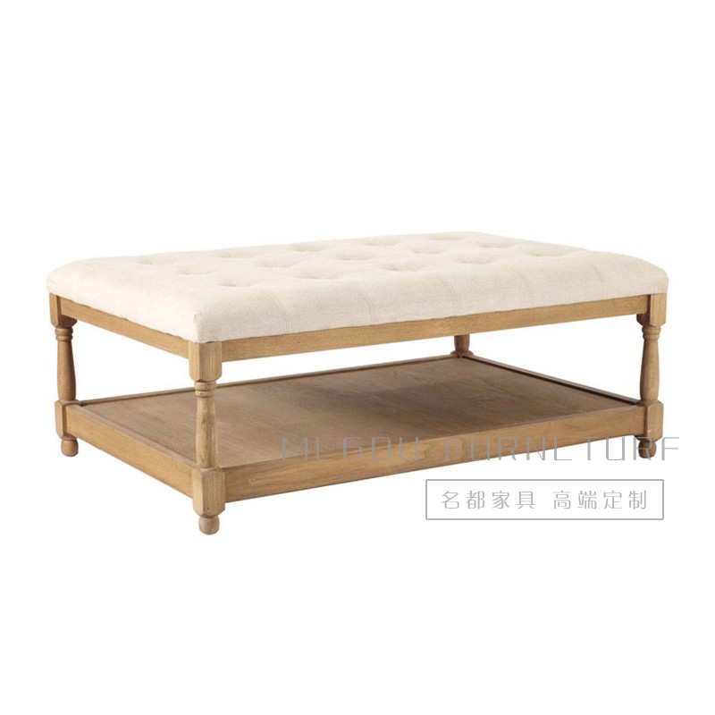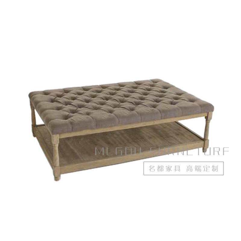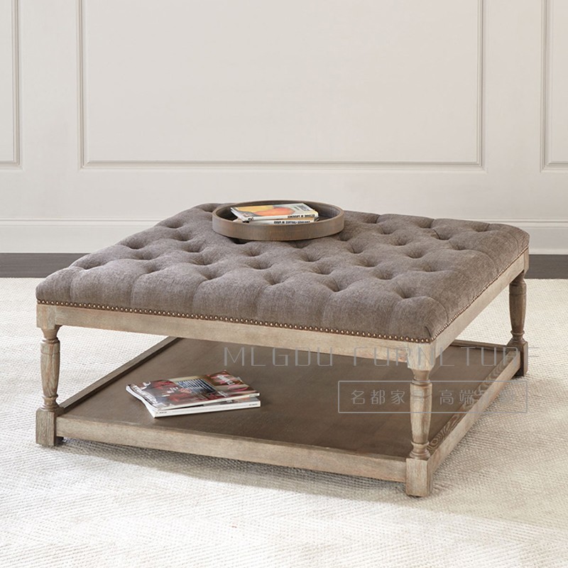 American Countryside Solid Wood Tea Table Simple Cotton Hemp Cloth Art Soft Bag Pull Button Tea Table Coffee Table Retro Soft Bag Tea Table