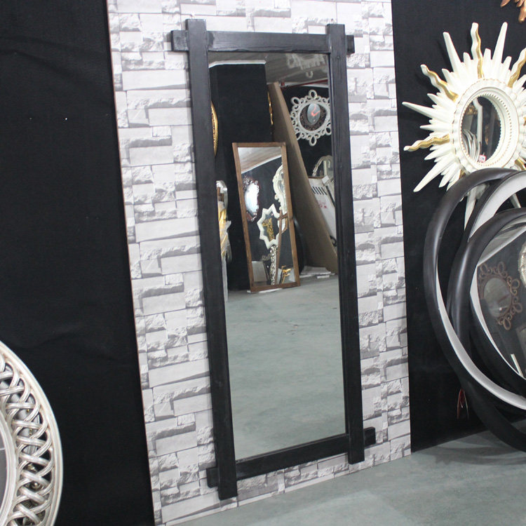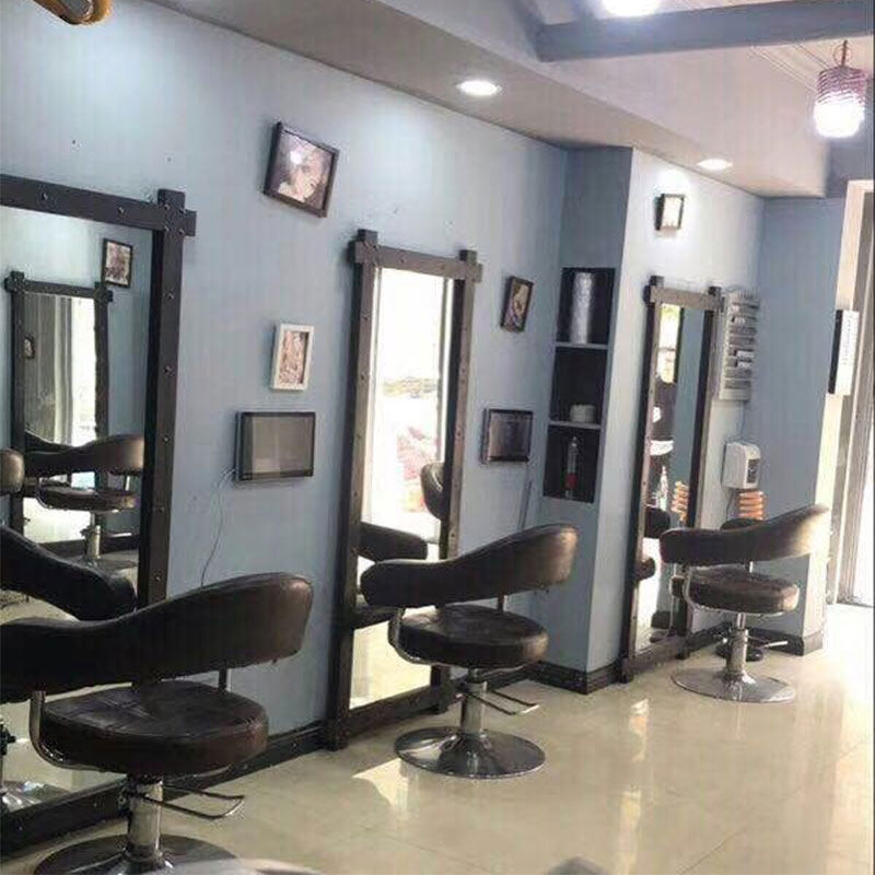 Solid wood well-shaped hair salon mirror Beauty salon mirror table wall-mounted American retro hair cut mirror Full-length mirror