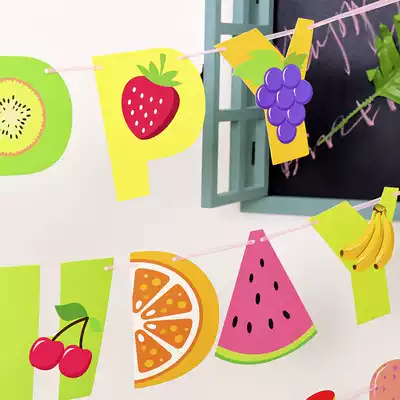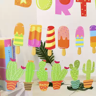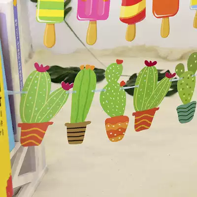 Kindergarten activity decoration Small fresh canvas strip cactus pull flag baby birthday party supplies Fruit canvas strip