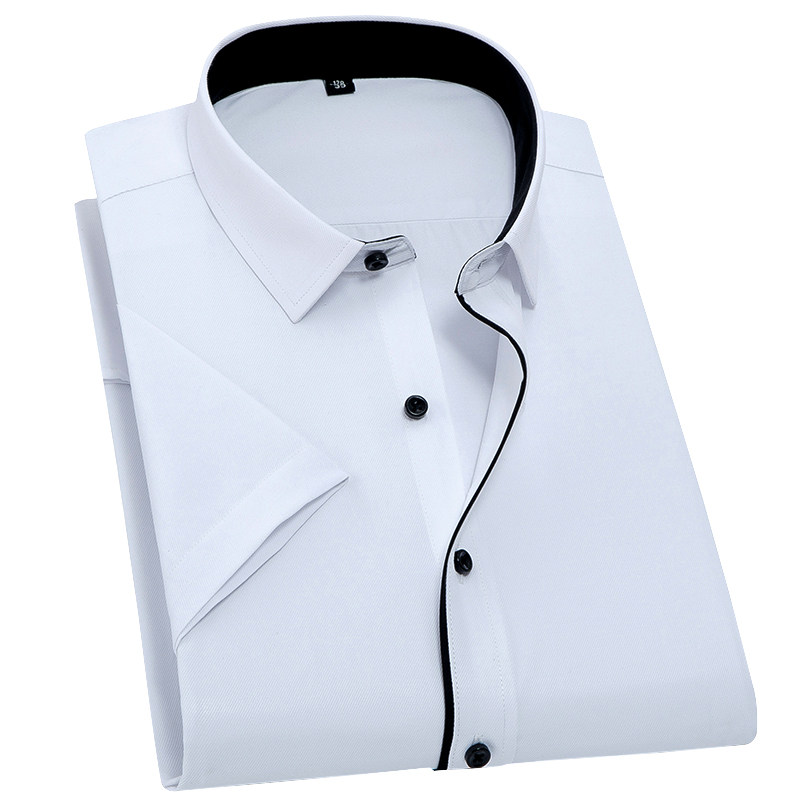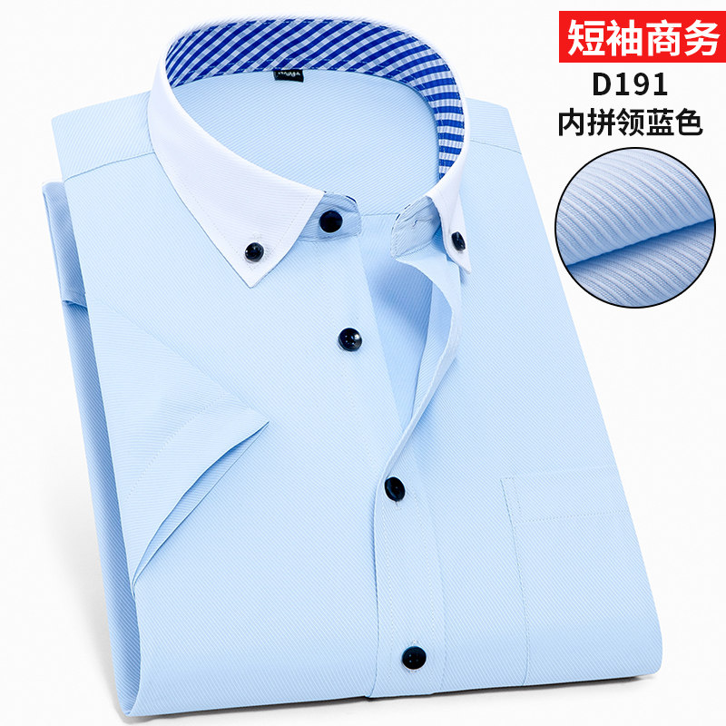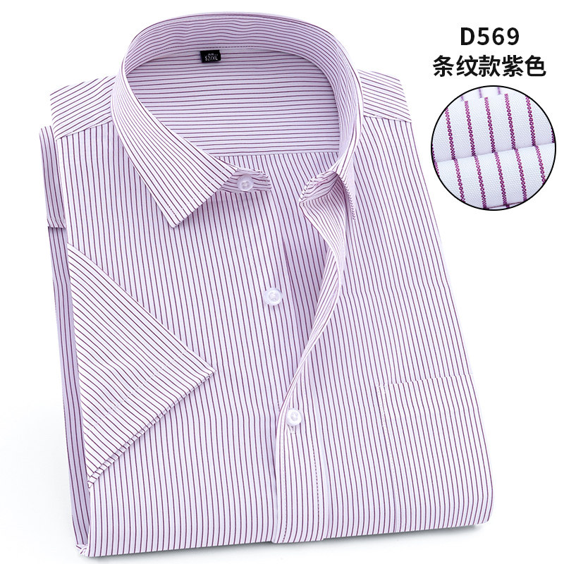 Summer short-sleeved shirt men's business blue striped casual professional tooling shirt thin half-sleeved inch fir overalls