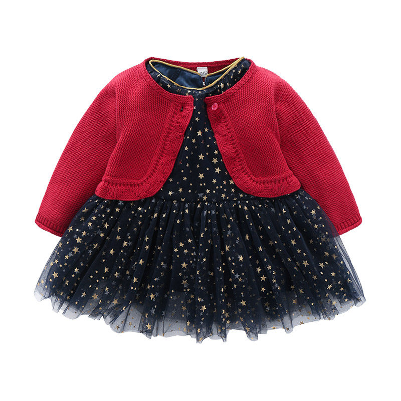 2022 spring and autumn new girl dress baby red western style princess skirt baby one year old dress skirt