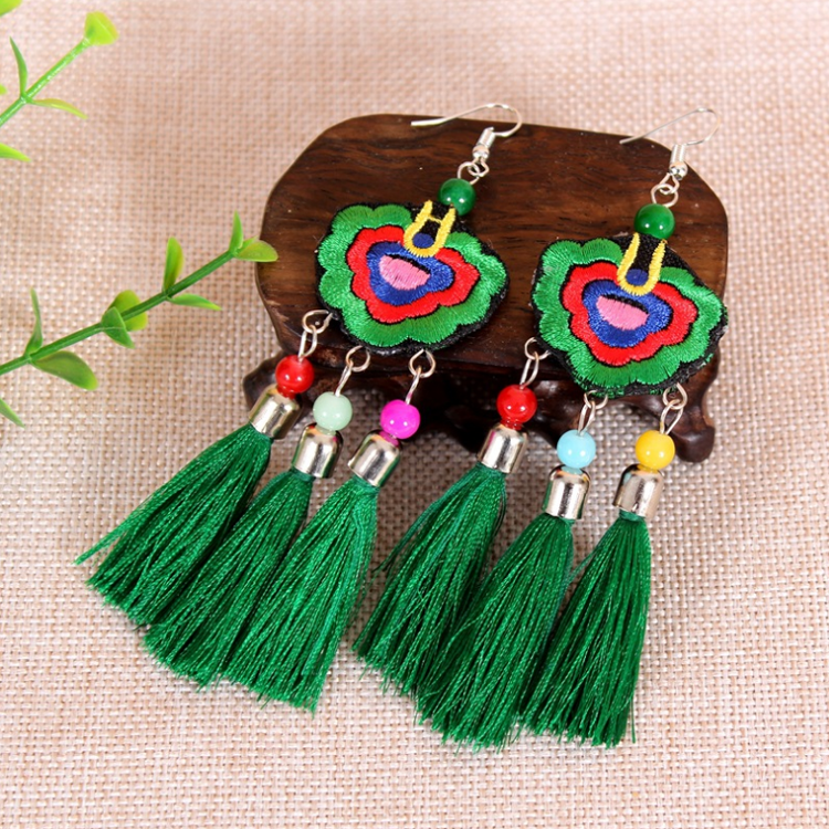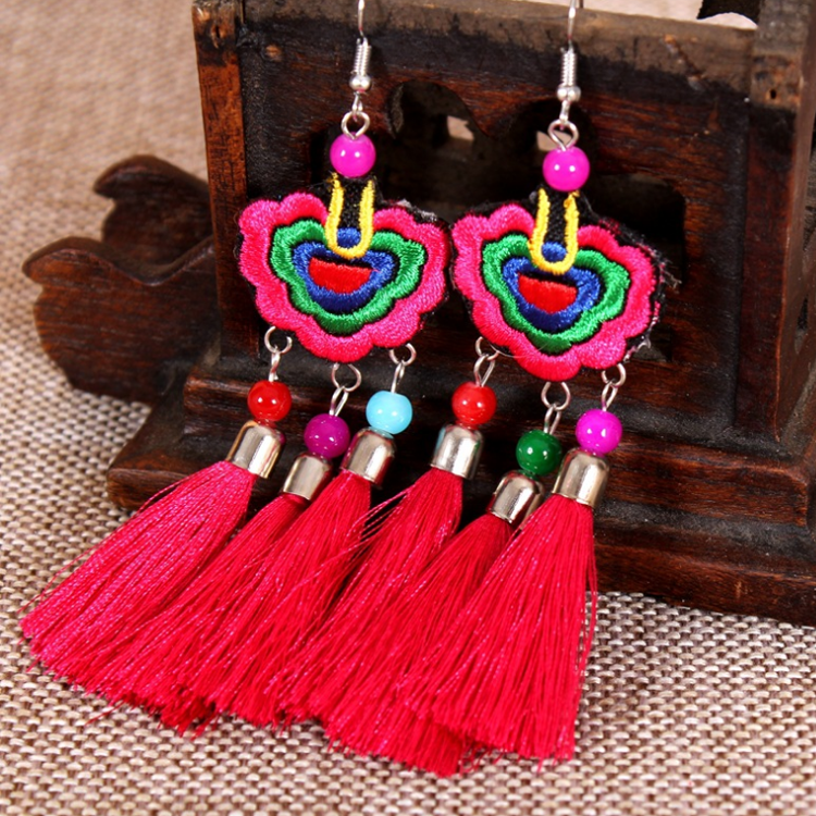 Yunnan Ethnic Wind Female Style Ornaments Embroidery Thread Flow Su Earrings China Red Beads Earrings For Leisure Retro Wind Wedding