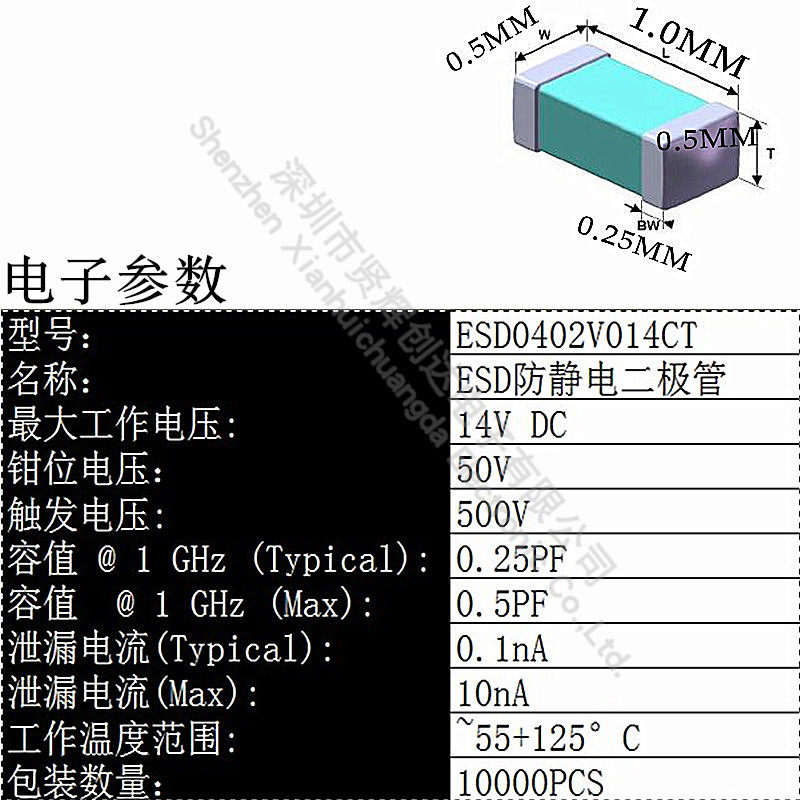 ESD anti-static diode ES0402V014CT-MP ES0402V014CT 14V 0 25PF pen-hold