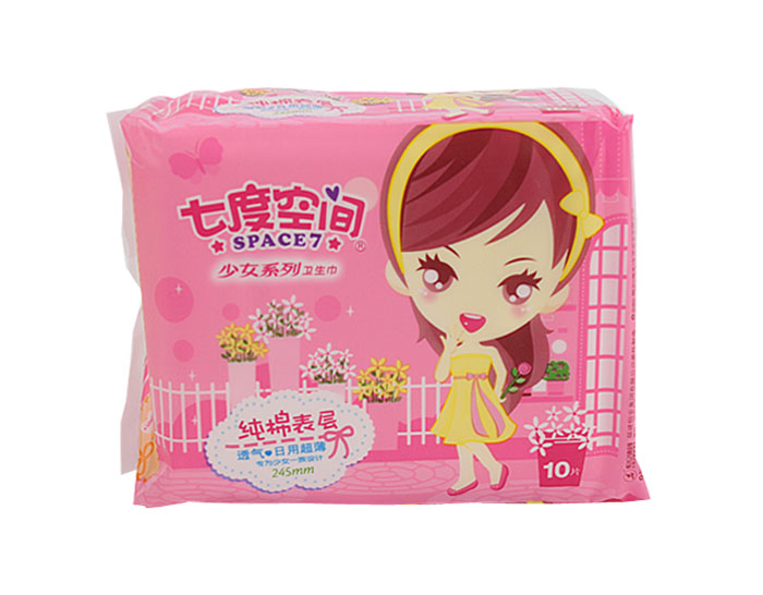 Seven-degree space QSC6110 adolescent girl series pure cotton ultra-thin breathable daily sanitary cotton 245mm10 sheet