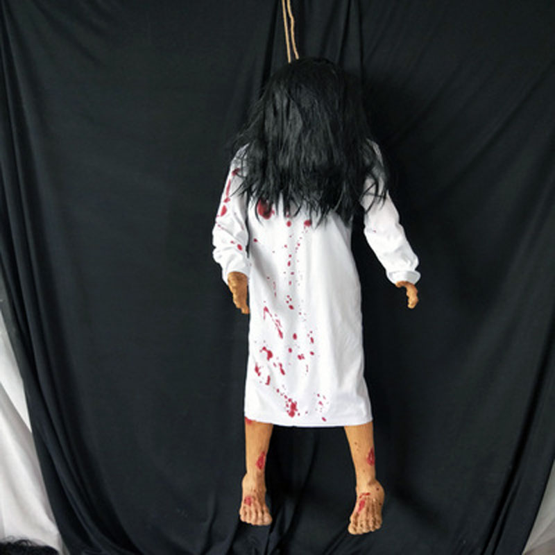 Haunted house horror props Hanging ghost female ghost Sadako pendant body Halloween decoration Room escape real zombies