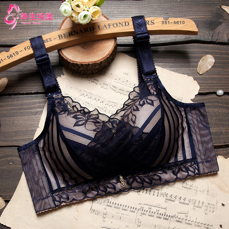 Health pure beauty Large size no rim thin section gathered bra adjustment type big chest show small sexy lace women's underwear