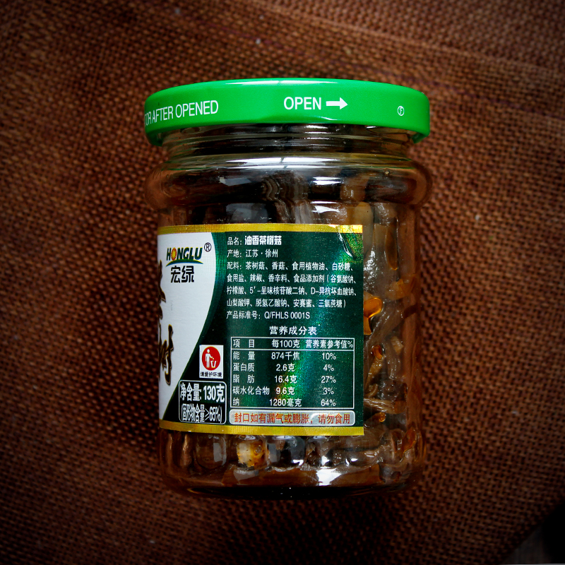Honglv oil-flavored tea tree mushroom 130g Fujian specialty Honglv side dishes eat porridge under rice pickles Pickles sauce side dishes bottled