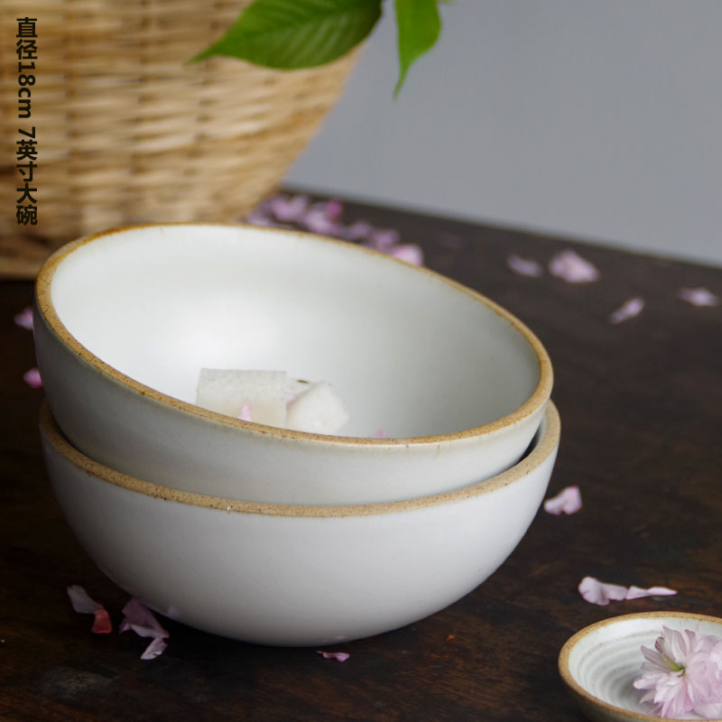 Handmade coarse pottery large bowl Japanese ceramic bowl fruit plate tableware soup noodle bowl medieval style wabi sabi style decorative bowl white