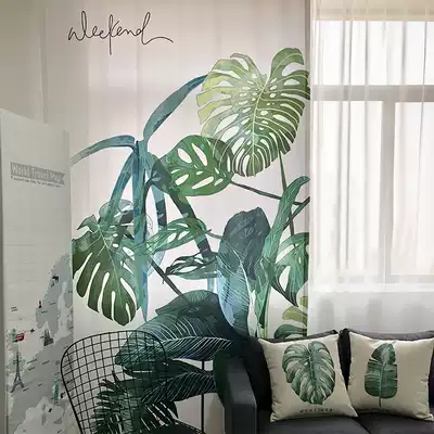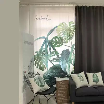 Nordic style curtain ins Wind semi-shading hipster finished simple living room bedroom plant green plantain banana leaves