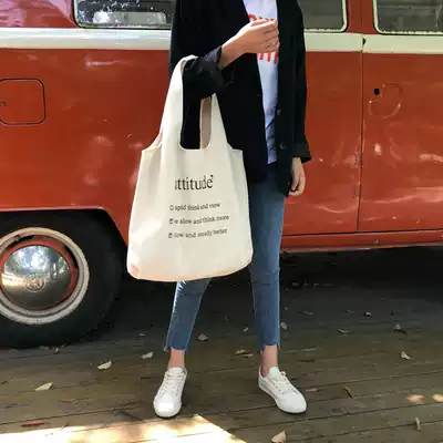 2020 new literary canvas bag shoulder bag female big bag ins female tide versatile chic bag retro canvas bag