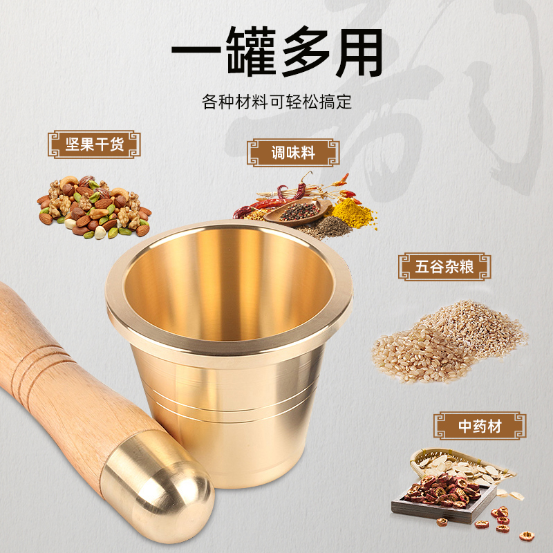 Cantonese copper cup pure copper mash jar garlic press mash machine Chinese medicine pounded Medicine Bowl mortar