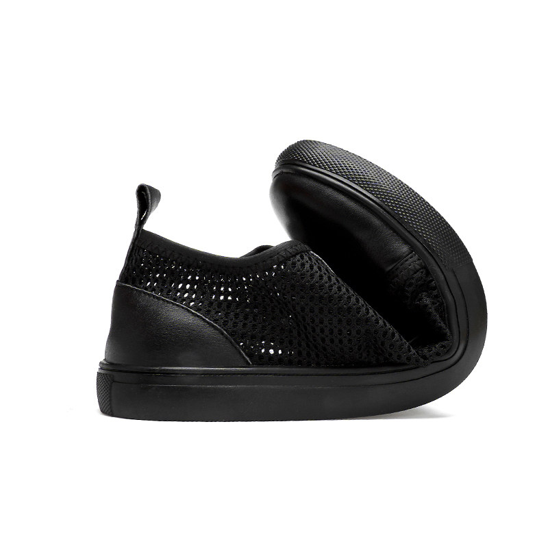 Summer pure blackboard shoes men's leather hollow breathable large size mesh shoes 45 leather fashion soft bottom casual shoes 46 yards