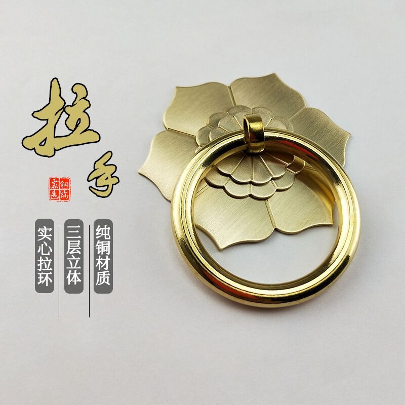 Retro Pull Ring Chinese Pure Copper Handle Pull Ring Imitation Ancient Furniture Copper Accessories Door Handle Medicine Cabinet Buttoned Hand Drawer Pull Ring