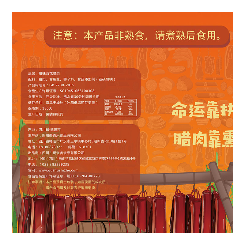 Pork, edible salt, spices, food additives (sodium nitrite), etc.