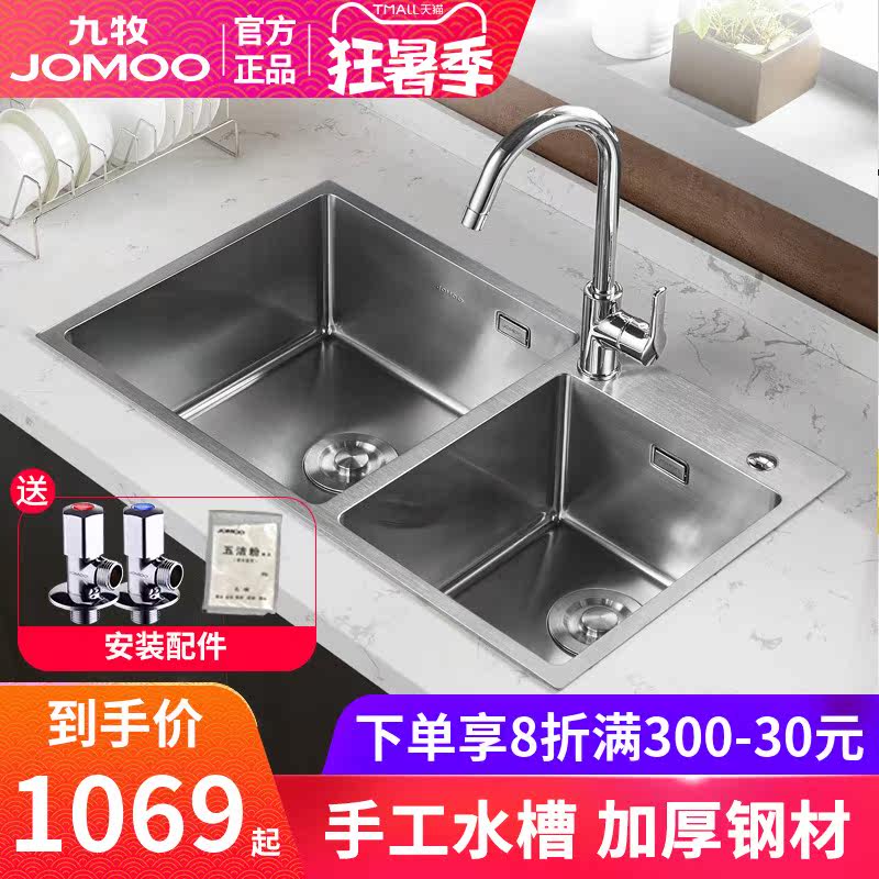JOMOO stainless steel sink double sink package pull-out faucet Manual double sink kitchen sink 06159