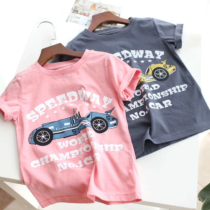 Star Racing Boy Short Sleeve T-shirt 18 Summer New Children Suit Pure Cotton Beating Bottom Half Sleeve Shirt CUHK Child Round Collar Blouse