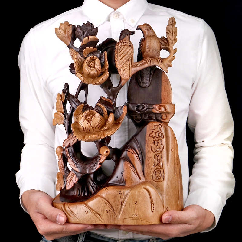 Wood carving good moon ornaments Chinese living room home decoration black sandalwood solid wood carving craft gift ornaments