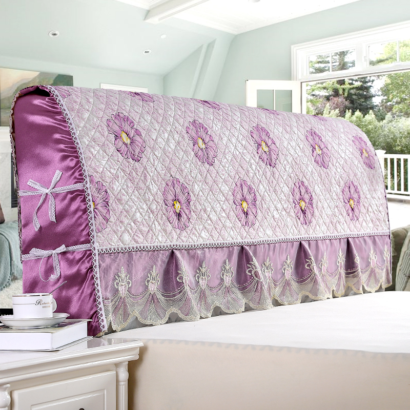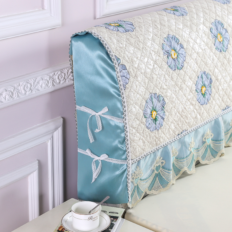 Spring and summer new minimalist cloth art clip cotton full bag elastic headboard wood bed leather bed lace headliner backrest cover