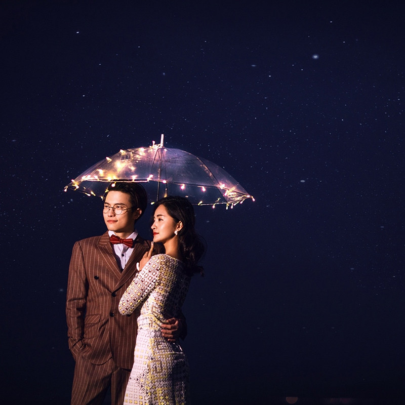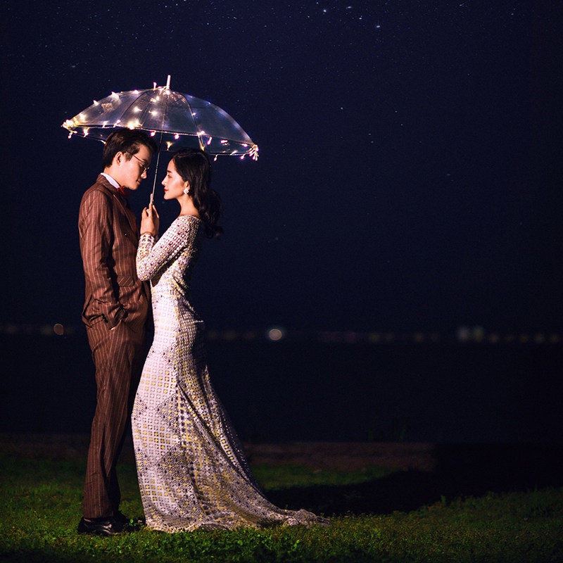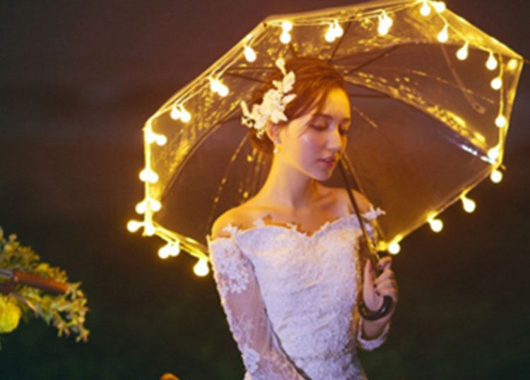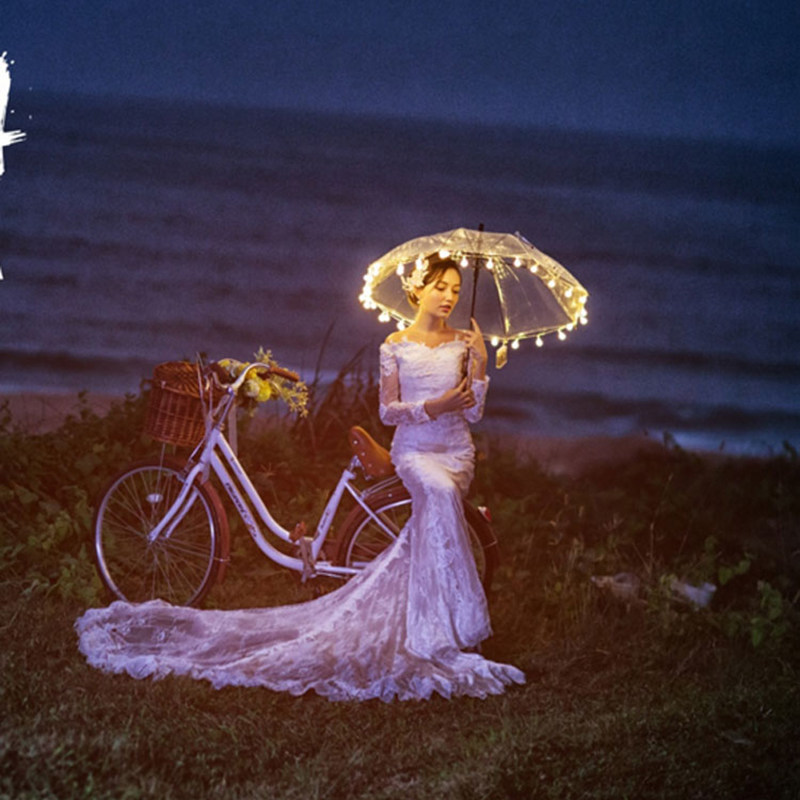 Night View Wedding Dress Photography Creative LED transparent umbrella lamp string new photo gallery Write a real Exterior View Brigade Photo Prop Light Umbrella