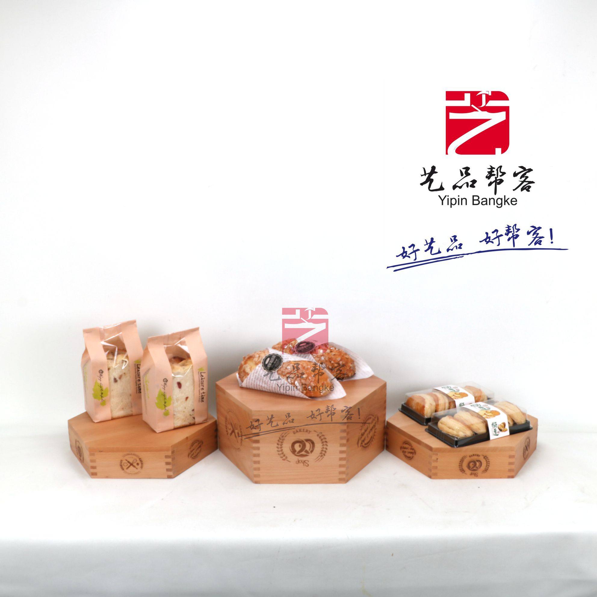 Art Helper Bread Rack Baking Soft Flat Display Solid Wood Hexagonal Three-piece Display Table