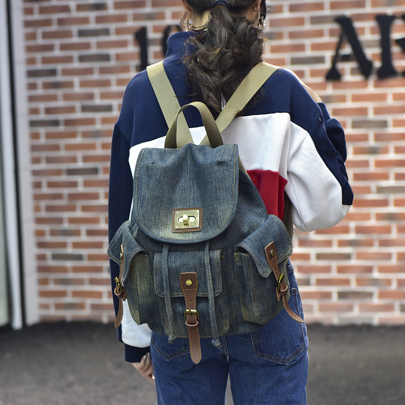 New retro style Sloping Cross Wash Water Denim Bunny Pack Tide College Wind School Bag Casual Boomers Travel Double Shoulder Bag