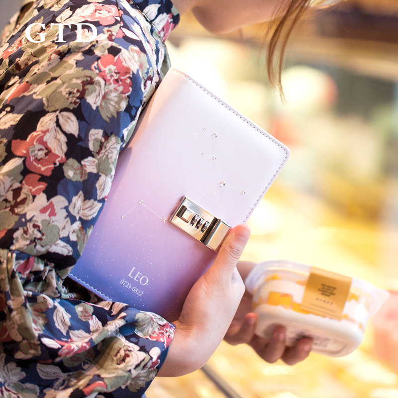 Diary Book with lock twelve Constellation Password Notebook Subtext for exquisite creative girls Pink Hand Bill Notepad Notepad Elementary School Children Princess Fairy Princess Cute Teenage Girl Heartburn Books stationery