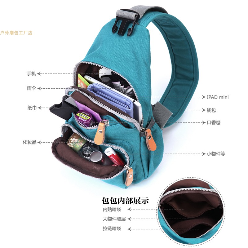 Kettle bag bag bag with a tourist canvas summer soil outdoor chest small backpack