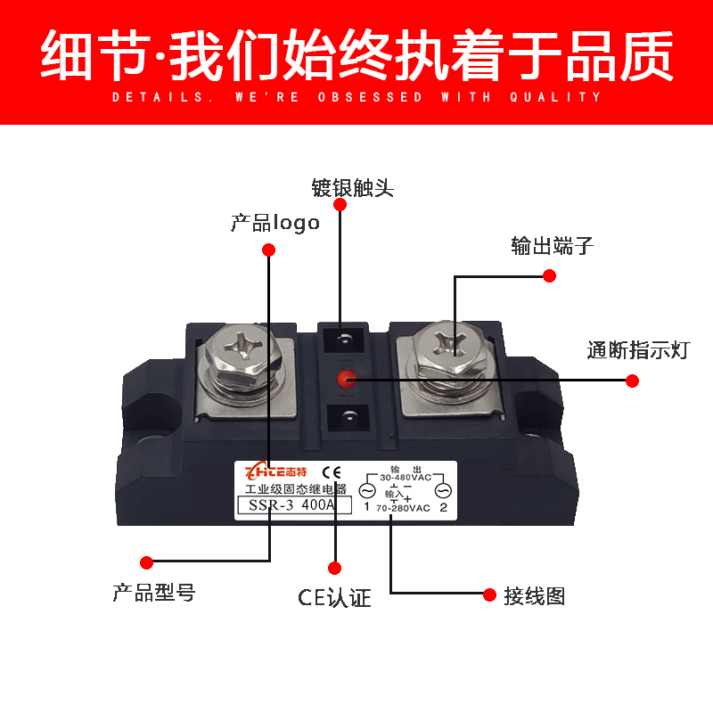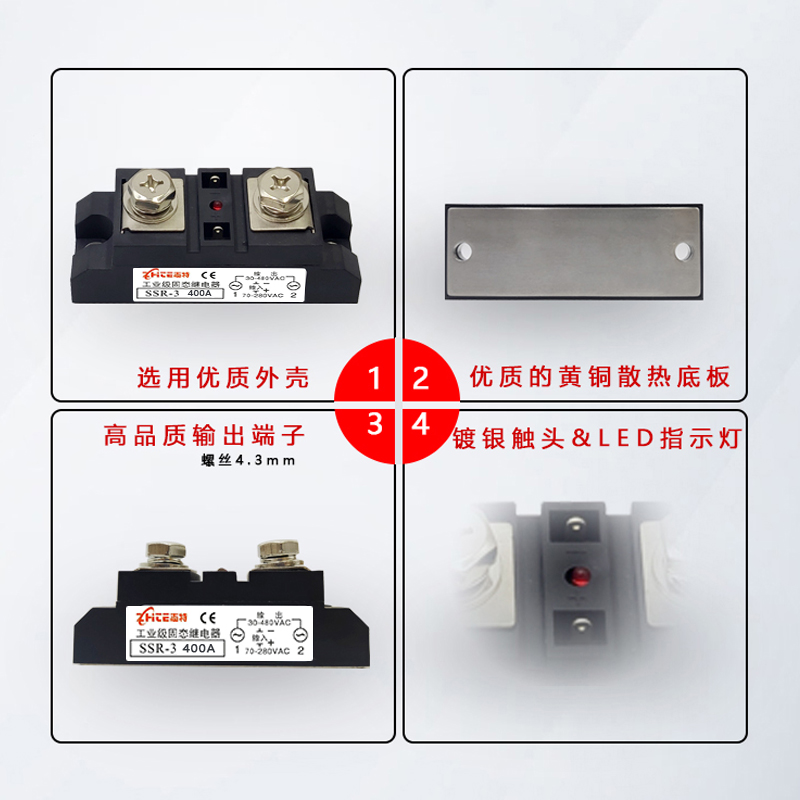SSR Zhit 400A Industrial Stage Single Phase Solid State Relay Module DC AC H3400Z