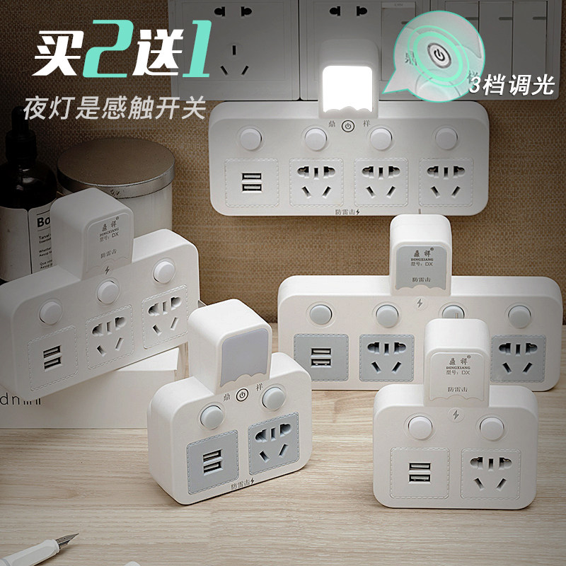 Wireless extension USB converter socket one-turn two-three-four conversion plug socket with switch night light