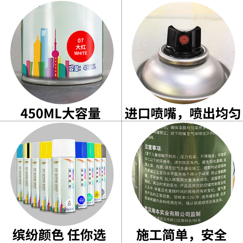 Transparent Red White Off-White Off-White Black Maroon Milky White Silver Light Gray Dark Gray Gray Grey Coffee Chocolate Light Brown Dark Khaki Dark Brown Camel Brown Magenta Pink Blue Watermelon Red Red Red Light Purple Purple Purple Orange Ginger Yellow Bright Yellow Lemon Yellow Light Yellow Khaki Light Blue Sky Blue Peacock Blue Sapphire Blue Dark Blue Lake Blue Navy Blue Violet Dark Green Army Green Emerald Green Fluorescent Green Flower Color Apricot Yellow Golden Champagne Fluorescent Yellow Matte White (Limited Time Specials) Anti-rust primer pearl white computer white refrigerator white Toyota platinum cup white Futian white matte off-white 142 liberation blue new Wu Zheng blue Futian blue northwest king time wind light sapphire blue dan blue bean green 18K gold Maya gold lapis lazuli gold self-spray paint matte black (limited time special)