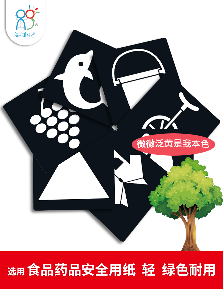 Black and white card (Bird's nest) Colour card (small flower) Color card (small flower) Black and white card (small tree) Color card 2 boxes All four boxes black and white card 2 boxes